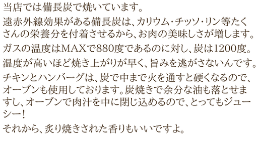 備長炭で旨みをぎゅっととじこめたハンバーグとステーキが味わえる「もん」。